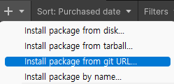또 하나는 위 링크를 복사해서 PackageManager -> Install package from git URL...로 설치하는 방법입니다.