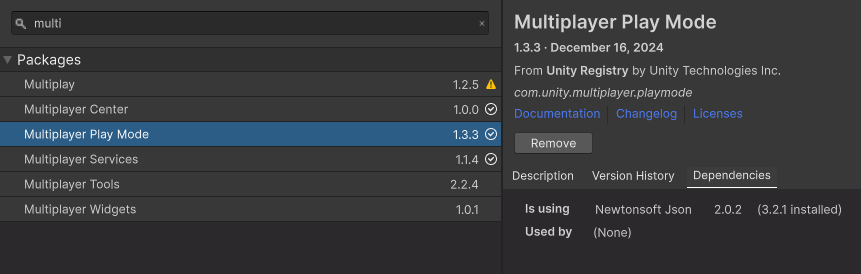 Multiplayer Play Mode는 Unity 6 이후부터 지원합니다.