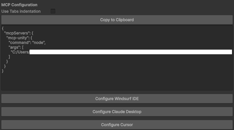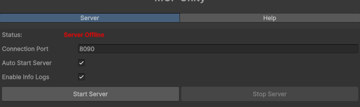 유니티 상단에 Tools -> MCP Unity -> Server Window 클릭하고 하단에